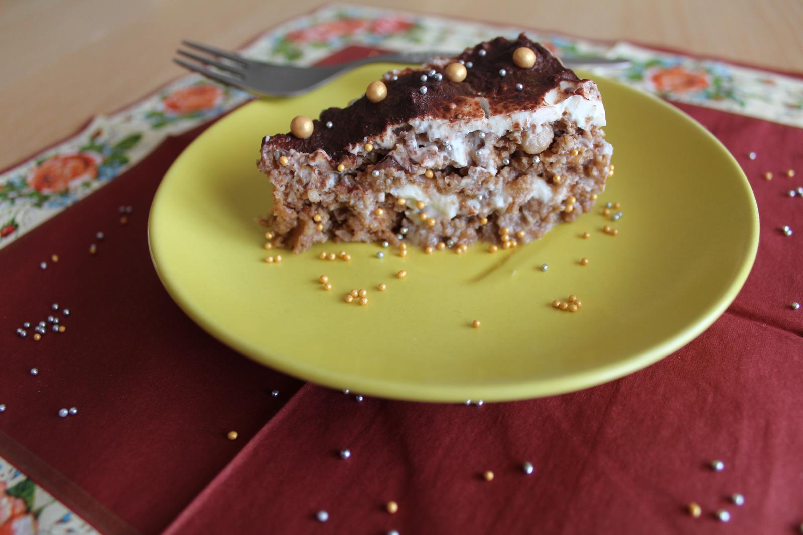 do tortovej formy sme dali piškúty bezlepkové, nato smotanu kyslú, potom marhule, opäťsmotanu, ďalšia vrstva piškótiek a navrch smotana, dali do chladničky schladiť a krásne narodeniny.