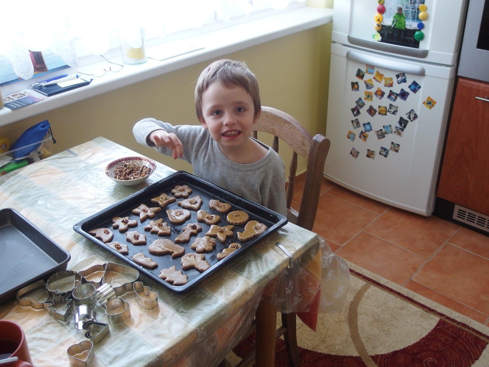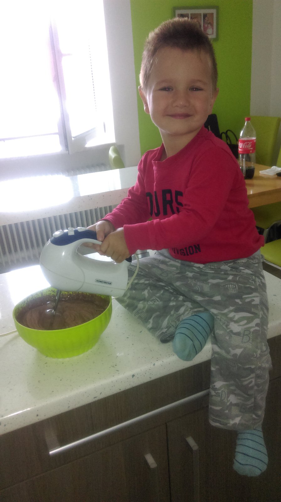 Hmm, je zaujímavé a úžasné, ako krásne sa deti učia, len obyčajným pozorovaním dospelých a sveta okolo seba, zvládnu všetko čo si zaumienia a ak niečo robia, venujú tomu všetku svoju pozornosť a sústredenie. Zbožňujem sa pozerať na sústredený (vtedy je zamračený 😀) Adamkov výraz, keď niečo zaujato robí. Pomáha naozaj pri všetkom baví ho piecť, variť, upratovať, prať, pomáhať tatkovi okolo auta, či v záhrade.... a to od mala malička, mám v ňom naozaj veľkého pomocníka 🙂