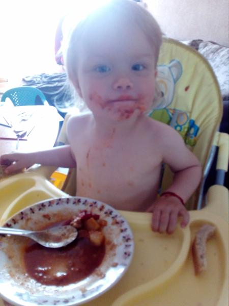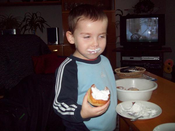 Tak to náš Jakub, ktorý mal 1.aprila dva roky, to je pomocník 🙂 keď sa pečie, ten je v kuchyni prvý a keď sa pečie s kysnutého cesta, prvé čo vyťahuje malú lyžičku zo šuplíka, hneď sa doň pustí a papá ho a musíme ho schovať 🙂 tých fotiek by bolo čo by som sem dala 🙂