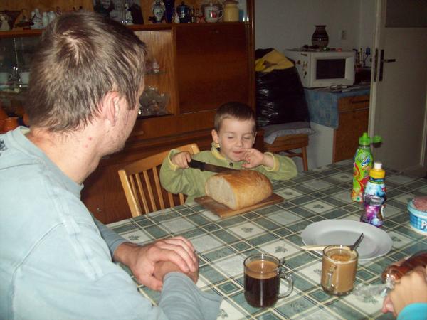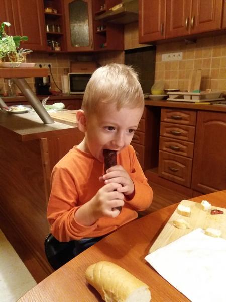 Náš Adamko je odmalička pomocník na nezaplatenie 🙂, aj v kuchyni...raňajky prichystá, napečie a zje 🙂