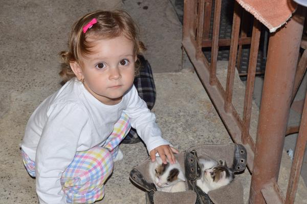 Ráno sa pýtam muža: "Nemáme žiadne vtipné fotky detí so zvieratkami, že?" A večer na nás starký kričí z dvora: "Poďte sa rýchlo pozrieť! Neuveríte, kde dala Paulínka búvať mačiatka!" Nuž v starkého pracovných "bakančiach" sa im po dnešnom horúcom dni určite podarí zaspať skôr, než jej samej 🙂)) Neviem, či je to dievčatko naladené na jednej vlne ako ja, ale nejakým spôsobom proste vycítila, že mama chce súťažiť 🙂 Už len, či tromfne ostatných súťažiacich 🙂