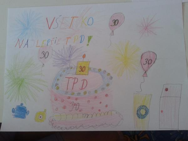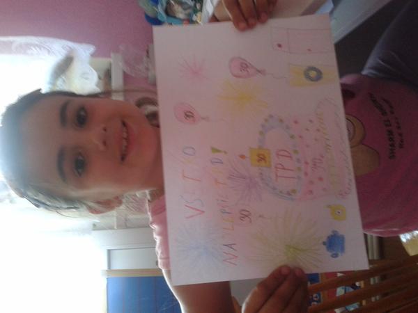 Dobrý den, dakujem krasne za pekne dni stravene s tpd, opat to bola pre nas mamicky zmena 🙂 s detmi sme sutazili a ako ceresnicka na torte krasne blahozelanie vytvorili 🙂 dcerka so synom sa velmi snazili 🙂 posielam ich tvorenie 🙂 zelame krasne okruhle narodeninky a prajeme minimalne dalsich 30 rockov, spokojnych zakaznikov a tiez zamestnancov, vas, dal syn aj do svojho obrazku :D ved pre koho je ta cokoladova torticka? mena som mu nadiktovala ja, priznavam sa🙂