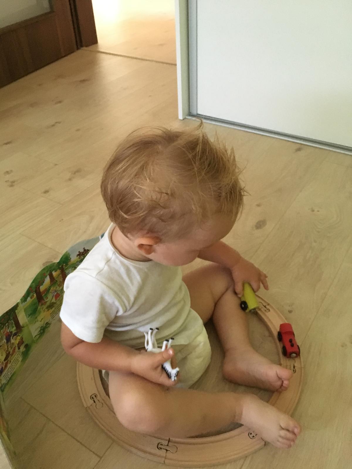 Jeho hračky nijako extra nezaujímajú, takže sa denne hráme na lovcov Felícií 😁