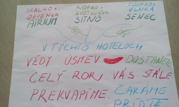 Ako príklad dávam naše minuloročné slogany: U nás si oddýchnete aj Vy rodičia. Na dovolenku nemusíte cestovať ďaleko – lebo aj dovolenka na Slovensku môže byť cool. U nás sa zabavíte za každého počasia.