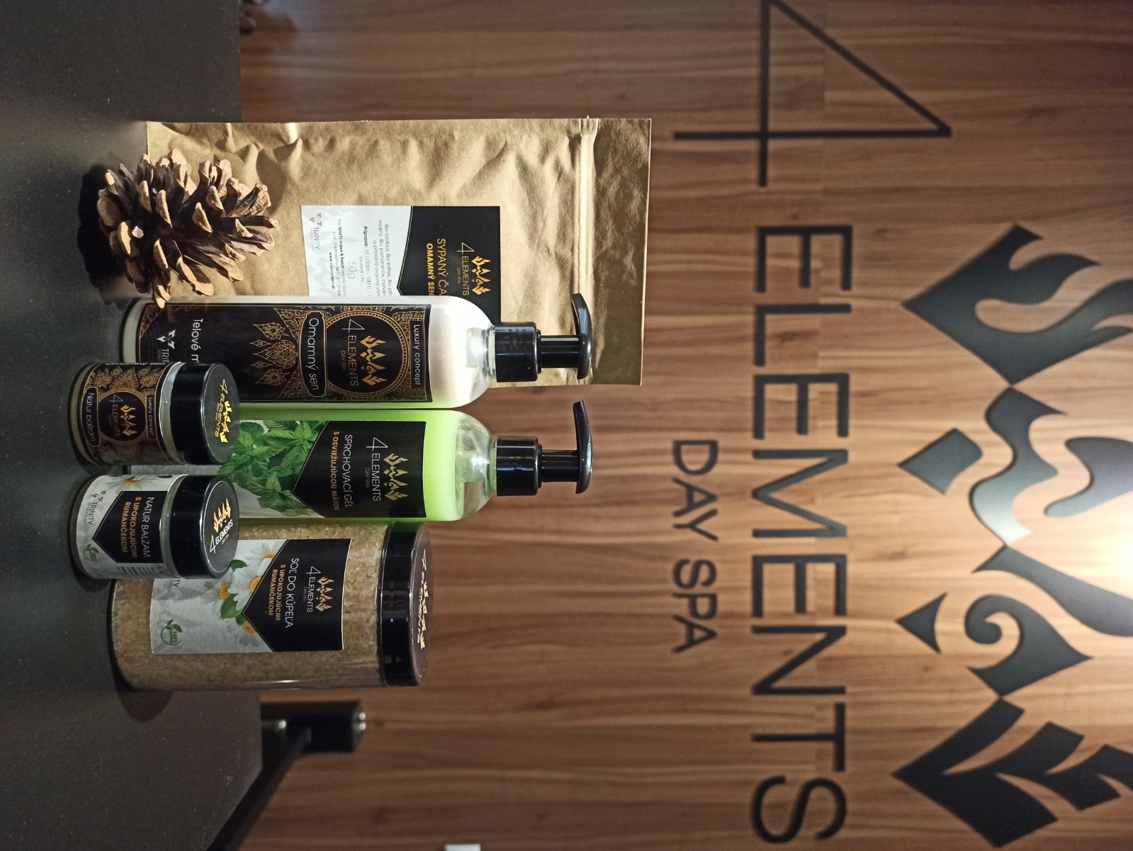 A keďže nie vždy sa človek dostane do hotelov a niekedy ani na tu masáž, tak sme sa rozhodli venovať vám kúsok starostlivosť aspoň takto na diaľku vo forme balíčka prírodnej kozmetiky našej výnimočnej značky 4 ELEMENTS. Balíček obsahuje:
