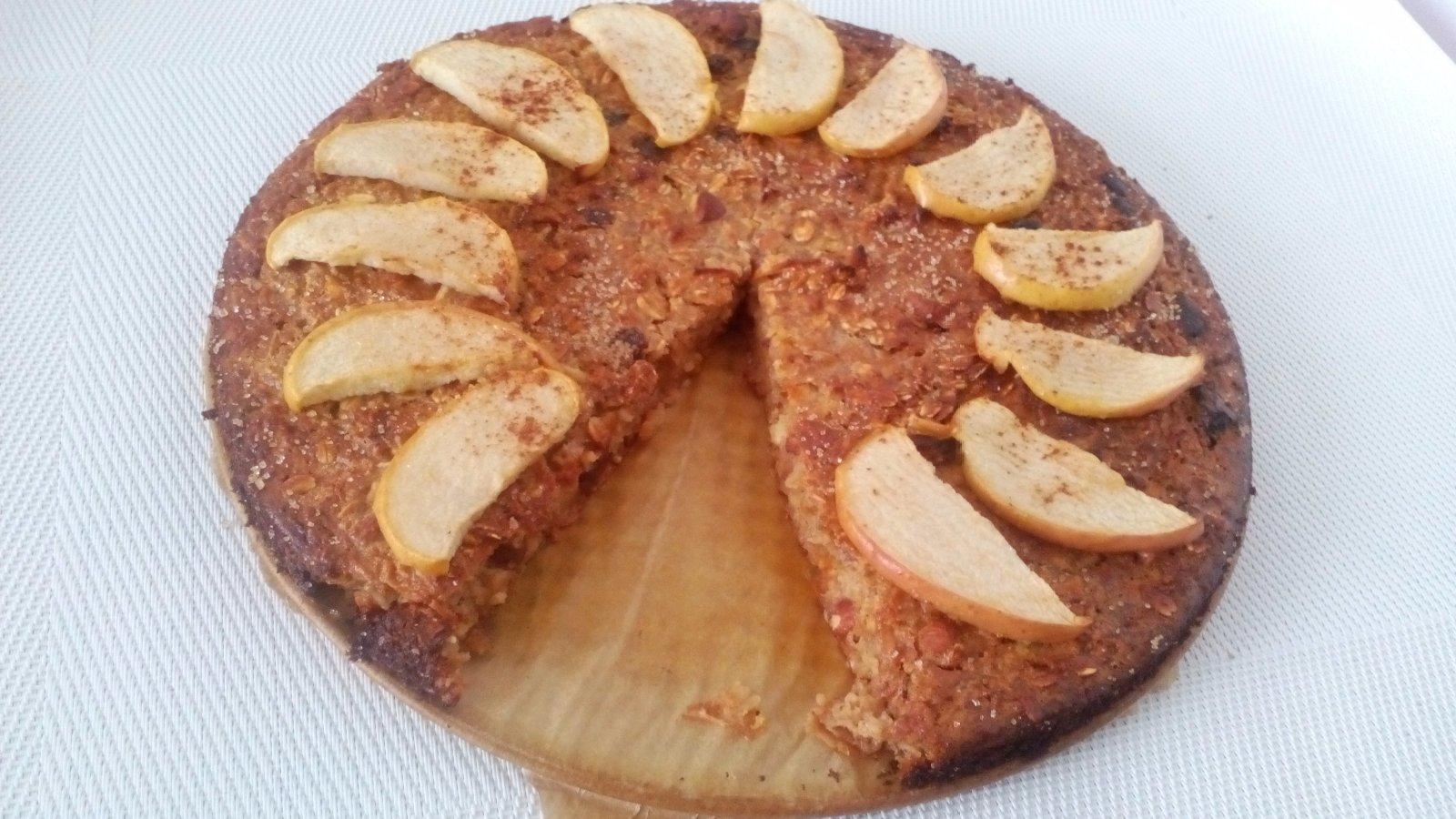 Vajíčka vyšľaháme s cukrom, pridáme jablká, hrozienka a citronovu kôru, pomleté vločky s práškom do pečiva, mak. Premiešame a napokon pridáme jogurt. Dáme na plech a upečieme.