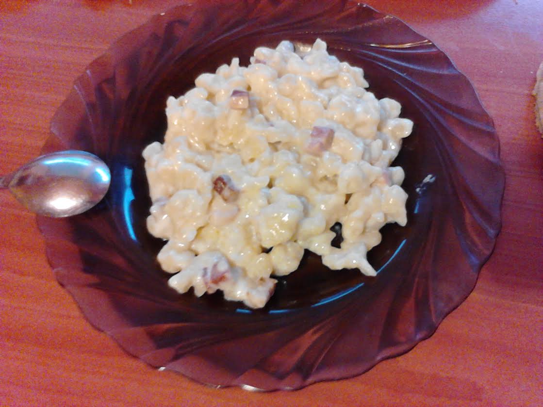 U nás j etento najobľúbenejší 🙂 Je len z 2 ingrediencií a bez pridaného cukru 🙂 1kg jabĺk, 260g hrubej múky. Jablká očistíme a nastrúhame na hrubo. Zmiešame s múkou a necháme 1-2h postáť. Potom tvarujeme guľôčky, ktoré dáme do vriacej (nesolenej) vody. Varíme 5min a 1 vyberieme, prekrojíme, aby sme zistili, či už sú z vnútra uvarené. ja som urobila asi kus väčšie varila som ich necelých 10min. Posypať môžme grankom, opraženou strúhankou, orechmi, tvarohom,....