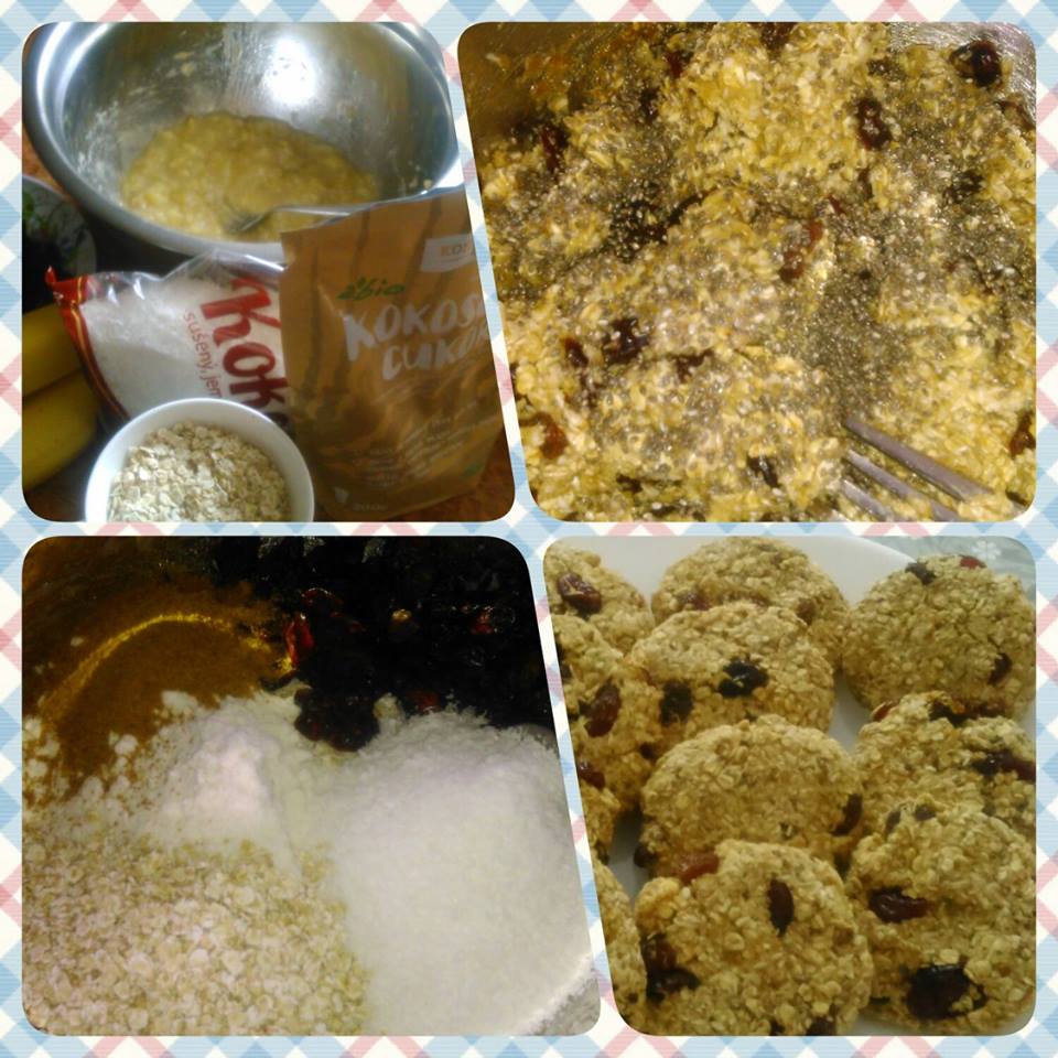 Roztlačíme banán, primiešame všetko ostatné, vytvárame sušienky, zvládne to aj 3-ročné dieťa 😉 , viď foto....zažili sme veeeeľa zábavy 😀 .....