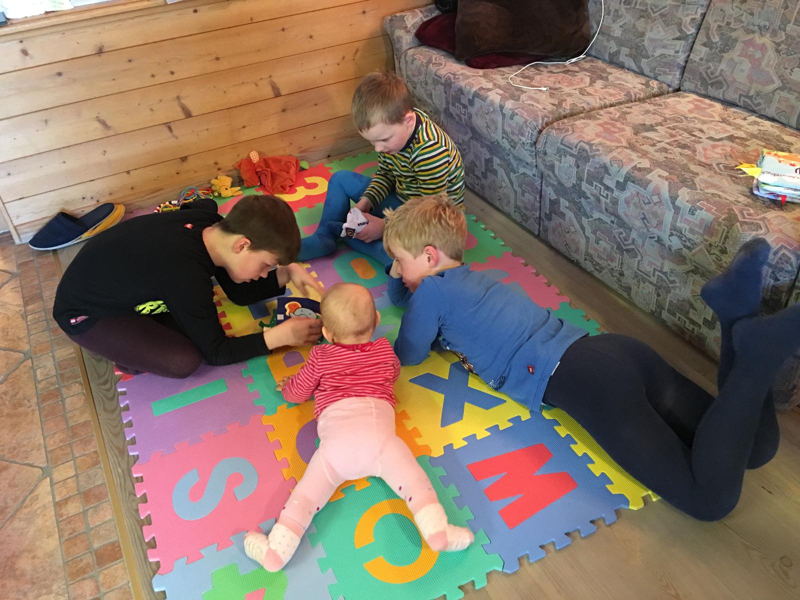 Dvaja starsi chalani hraju aktivne futbal, inak vsetci behaju detske behy a najmladsia "beha" v kociku 😀