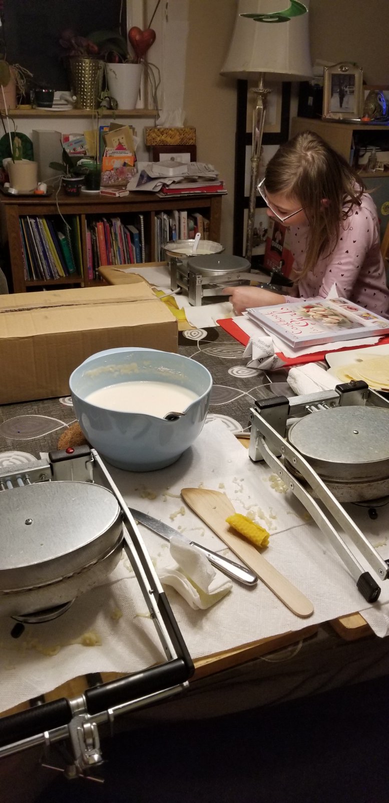 Ja pečiem oblátky od prvej adventnej nedele. Robím jednu dávku oblátok k štedrej večeri a dve dávky trubičiek. Oblátky sú pre mňa slávnostnejšie, tie si hneď odkladám, aby sa nepoškodili a nezjedli! Pri trubičkách musím rátať s okamžitým úbytkom: heart_eyes: Pečenie trubičiek mi trvá skoro 4 hodiny, mám zväčša popálené prsty z toho, ako natáčam upečenú oblátku na drevenú paličku, ktorou ich rolujem.