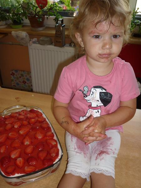 Dobrý deň. Fotiek mojich detičiek ušmudlaných od dobrôt by som mohla dodať vcelku dosť, ale radšej prihodím foto mojej prvej vlastnoručne upečenej torty 🙂 Nie som nejaká šikovná cukrárka, nikdy som nejak veľa nevypekala, ale keď prídu deti, príde to samo 🙂 Torta síce nevyzerala úplne super, ale zjedla sa celá, takže sa mi asi podarila... No a samozrejme - keďže je toto súťaž, kde sa máme podeliť o sladké nehody, tak aj ja jednu pridám 🙂