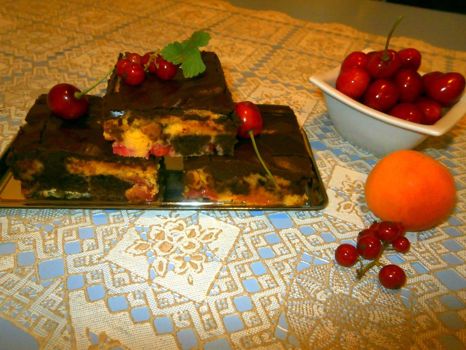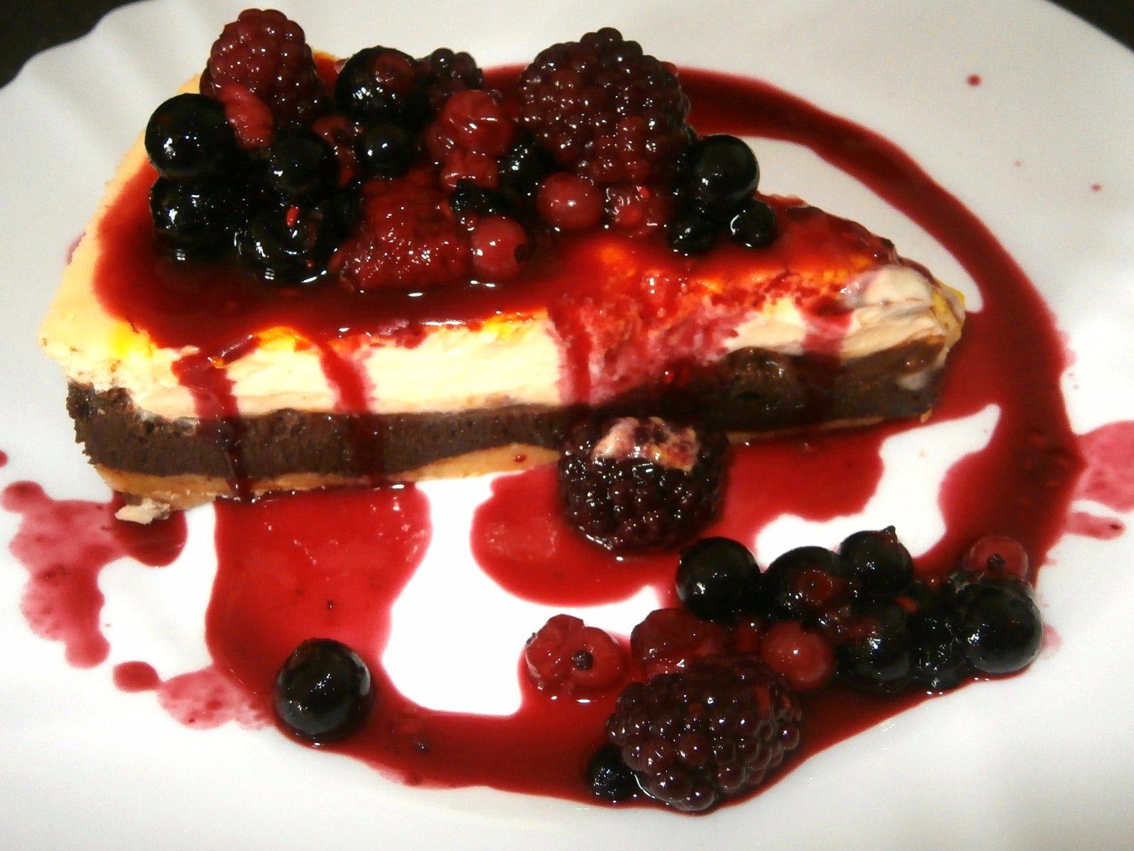 Kolac Browncheese s cerstvym ovocnym coulis (omackou).