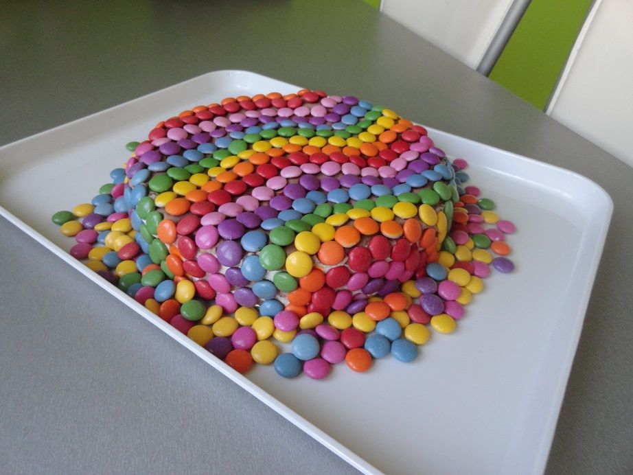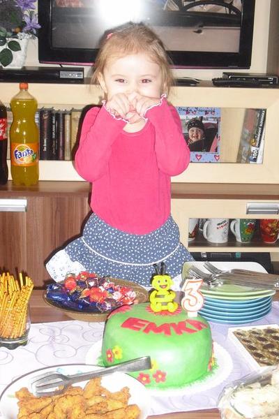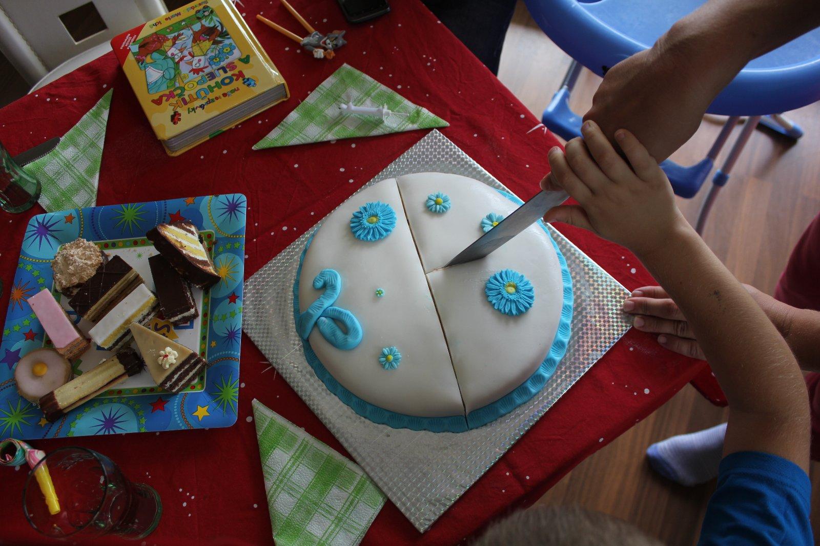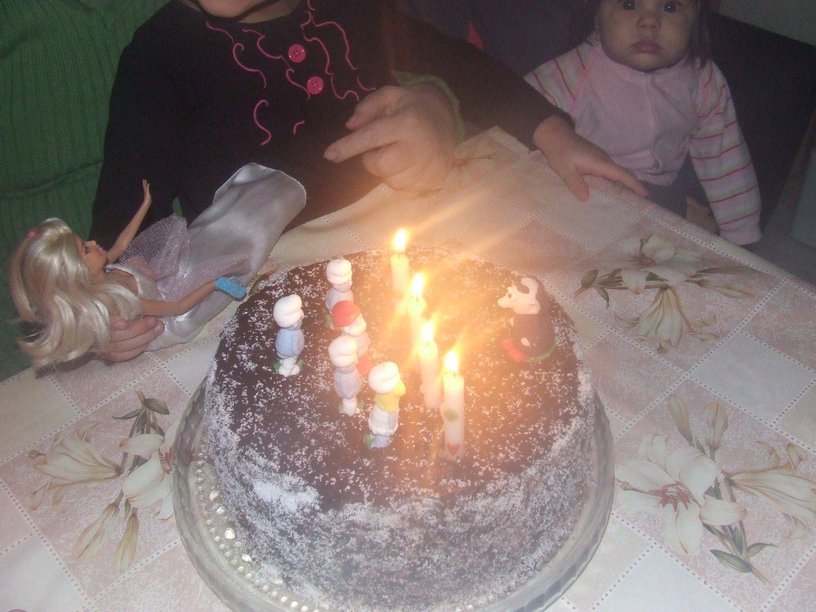 babka upiekla tortu a ozdobila so sladkými šmoulami