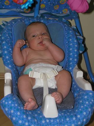 v noci s prsnikom velky problem nema, predpokladam, ze je otapeny natolko, ze nevladze prilis protestovat. ale casto sa ale pri papani zakucka - zabehne mu.