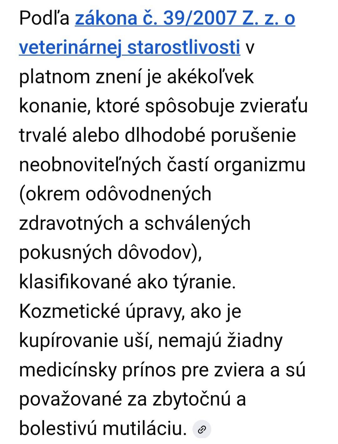 (Pozn. verejné zháňanie kupírovaného psa je propagácia týrania)