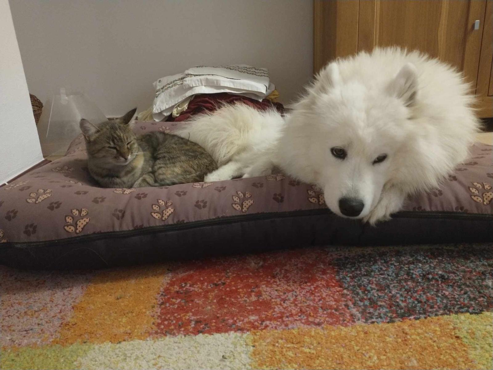 @liusa82 jáj, tak tá naša keď prší, tak leží na psom pelechu pred dverami a čaká kedy prídeme domov. 🙂 A dnu spí aj s našou Máškou , niekedy, hlavne cez deň.