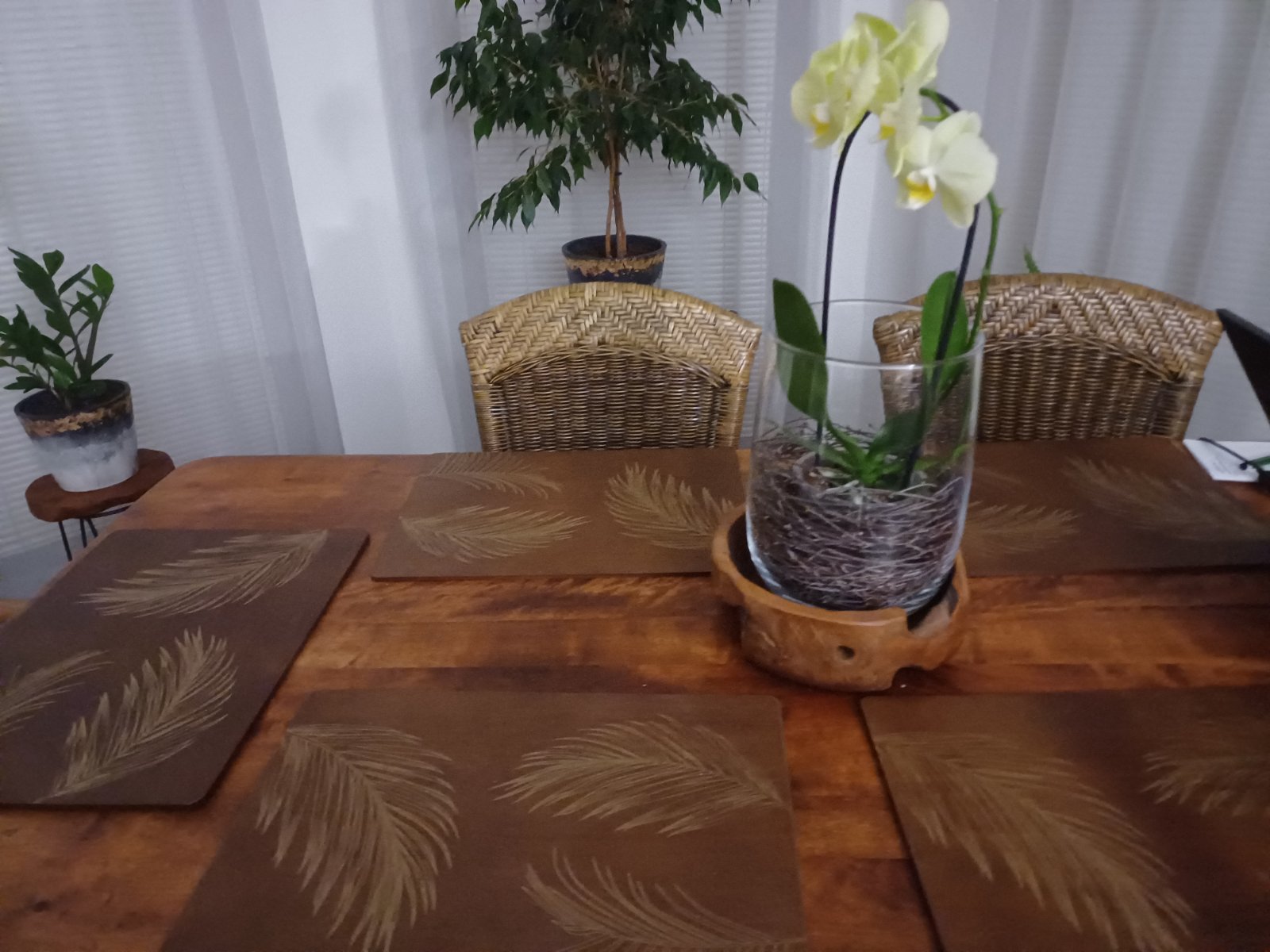 Nič, zavádzalo to, resp zavadzia. Mam obrus alebo prestieranie. Ak mám kvety dám ich tam ale keď sa ide jest presadzuje to.