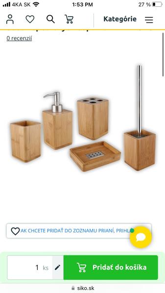 @hruska91 Urcite uz nedavaj ziadne dalsie doplnky. Uz teraz je tam toho prilis vela na tak malom priestore. Ked mas tak malinku kupelnu s tak komlikovanou konstelaciou prvkov, musis ju co najviac vizualne zjednodusit. Ziadnu dalsiu farbu. Zostan pri bielej a tej sivodrevenej co mas na podlahe. Doplnky vo farbe svetleho dreva co si sem pridala sa vobec nehodia k tej farbe dreva co mas na podlahe. Ani prutene nie, lebo maju vyraznu strukturu a farbu, bol by to dalsi rusivy element. Ty potrebujes nieco hladke, biele a ja by som volila leskle aby ti to miestnost presvetlilo, ale teraz je v mode matna, tak to je uz tvoja prefeencia.