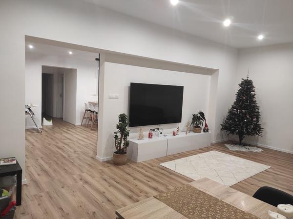 Zacala by som tym, ze stol by som dala k oknu a gauc posunula do rohu na tu stenu, kde je stromcek. Potom pozrela na stranke Ikea zavesy a zaclony (oni predavaju s dlzkou 3m tusim), k nim doladila vankuse na gauc a koberec. Zvysok ako farbu/obklad steny za tv by som ladila nakoniec. Plus nejake doplnky, obrazy, policky a pod.