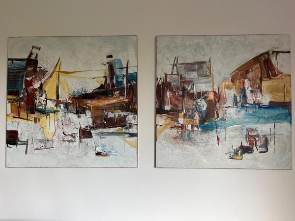 Neviem ako veľmi ti na tých obrazoch záleží, ale my sme nechceli žiadne tuctové obrázky o obchoďákov a tak som na Sashe našla maliarku, ktorej práca sa mi páčila, nakontaktovala som sa na ňu, pofotila som jej celú izbu kvôli farebnosti, dohodli sme rozmery a ona nám namaľovala dva originálne obrazy presne na mieru.