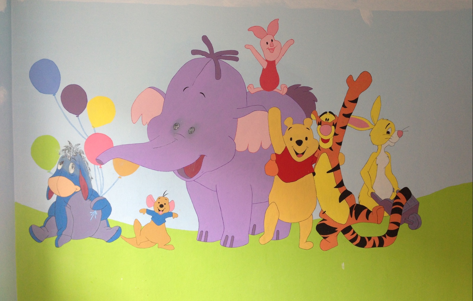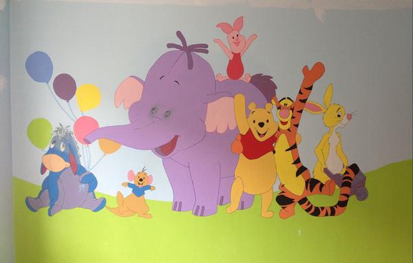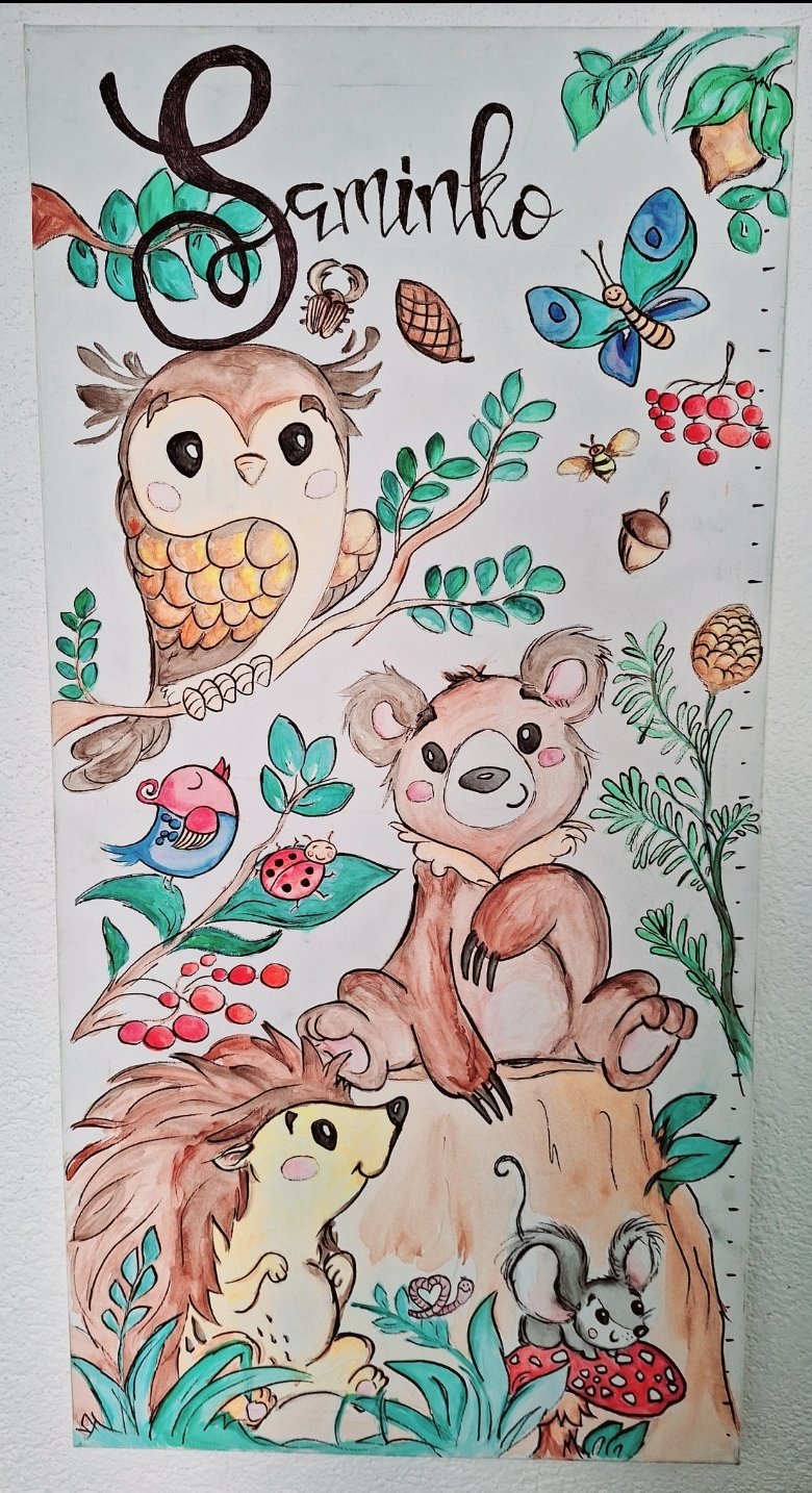nic sme si nemalovali na stenu. ked som bola mala, tak nam jeden ocinov kamarat maloval mickeyho a taketo postavicky, ale to tak, ze ozaj pekne bolo spravene. len potom bol problem to premalovat 😀