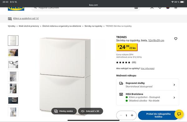Pod zrkadlom mame botnik s lavicou, kde su topanky casto nosene a potom mame original skrinu na topanky, kde su zvysne na sezonu. Ale mame velku predsien a sme len dvaja, cize ziadny problem. Jeden botnik mam dokonca aj na chodbe este pred vstupom do bytu, kde mam sportove topanky, nikdy nic nezmizlo.