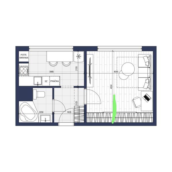 myslim rozdelit tu 24.5m miestnost sadrokartonovou prieckou a spravit v nej spaci kut, pripadne izbicku pre dieta, trochu vacsiu, ako som nakreslila (cca 2x4m). Zvysnych 16.5m by bola kuchynka s obyvackou.