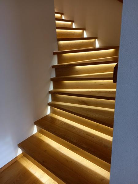 Máme led pásiky, manžel kupoval v elektre. Vyzerá to super, dokonca nemáme iné svetlo nad schodami, len tieto pásiky a svieti to parádne. Na každom schode zospodu tej schodnice sú prilepené.