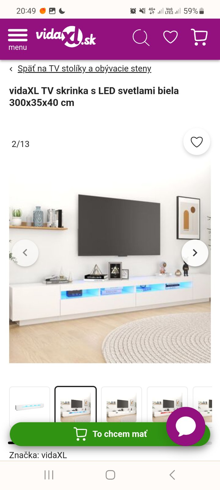Hore na ľavo zavesená skrinka široká 50cm vysoká 100cm, na pravo 2x skrinka široká 40cm vysoká 100cm. Televízor s uhlopriečkou 189cm, nad to už mi polička prišla škaredá takže to nemám 😁 potom už len gauč a parapety na ktorých sú kvety.