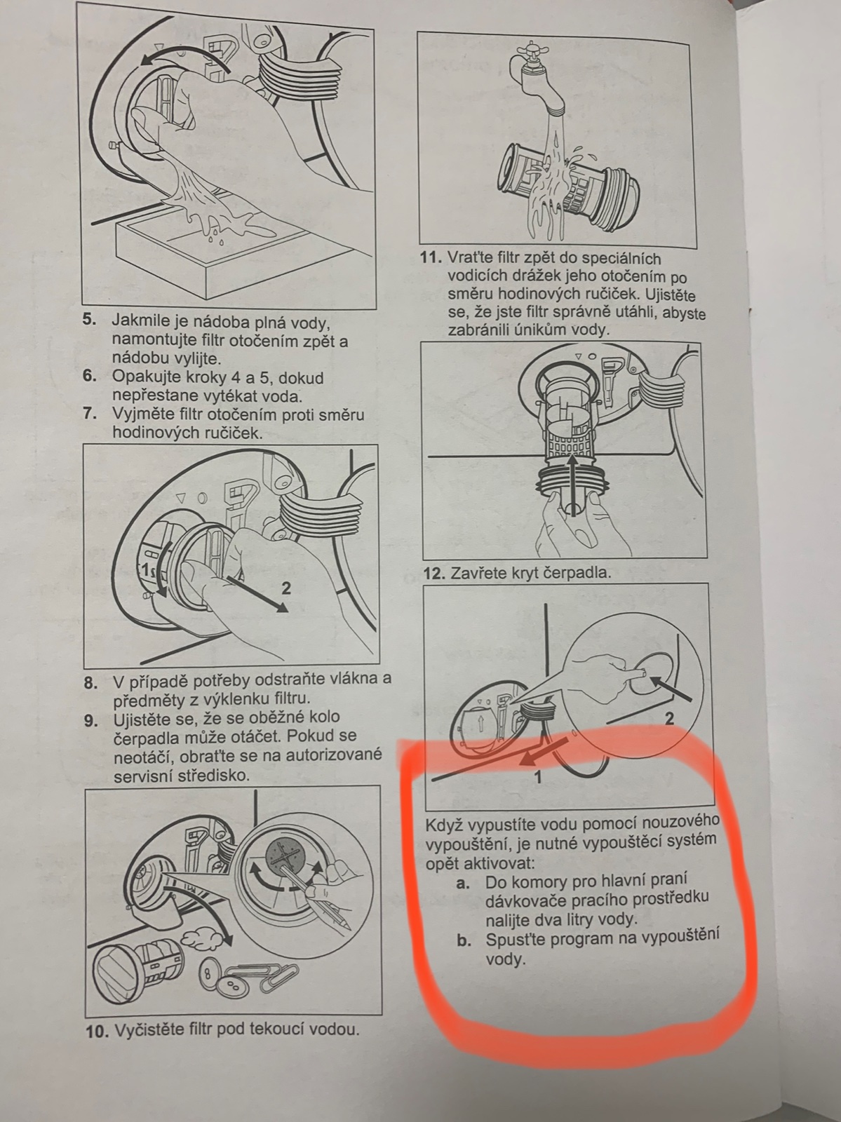 Prvykrat som cistila cerpadlo a v navode ma splietol tento posledny bod. Mam pracku AEG. Treba teda doliat 2L vody ako sa pise? ked som vodu vypustila, cerpadlo vycistila a vratila spat. Chapem to spravne ze po kazdom vypusteni vody tymto sposobom trwba doliat?