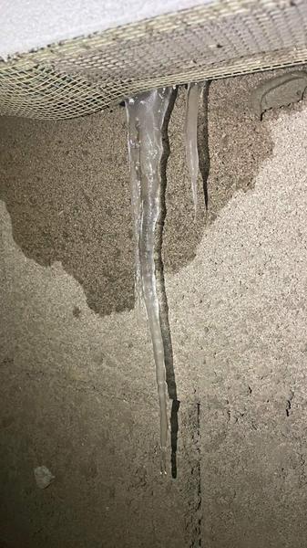Toto nebude kondenz. Tecie tam nejaka trubka. Ak sa tam fakt nekuri (preco? ked mrzne, tak by sa malo aspon temperovat), tak kludne mohlo nieco na kraji zamrznut. Zateplenie drzi teplo, ale nekuri. Ak tam nie je zdroj tepla, tak to samozrejme zamrzne aj zateplene.