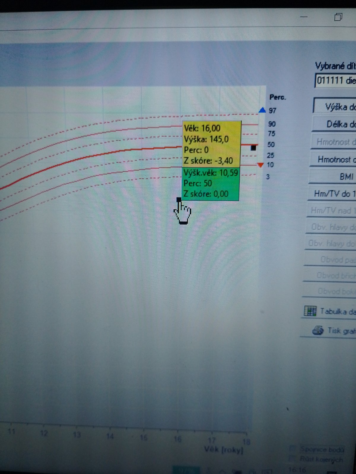 @vevesh tu je grafa údaj, kde v grafe je 145cm dievča v 15r a 16r. Ako vidíš, je to pozícia hlboko pod hradom na 0%, čo známe, že sa tam nachádza 0% zdravých dievčat daného veku.