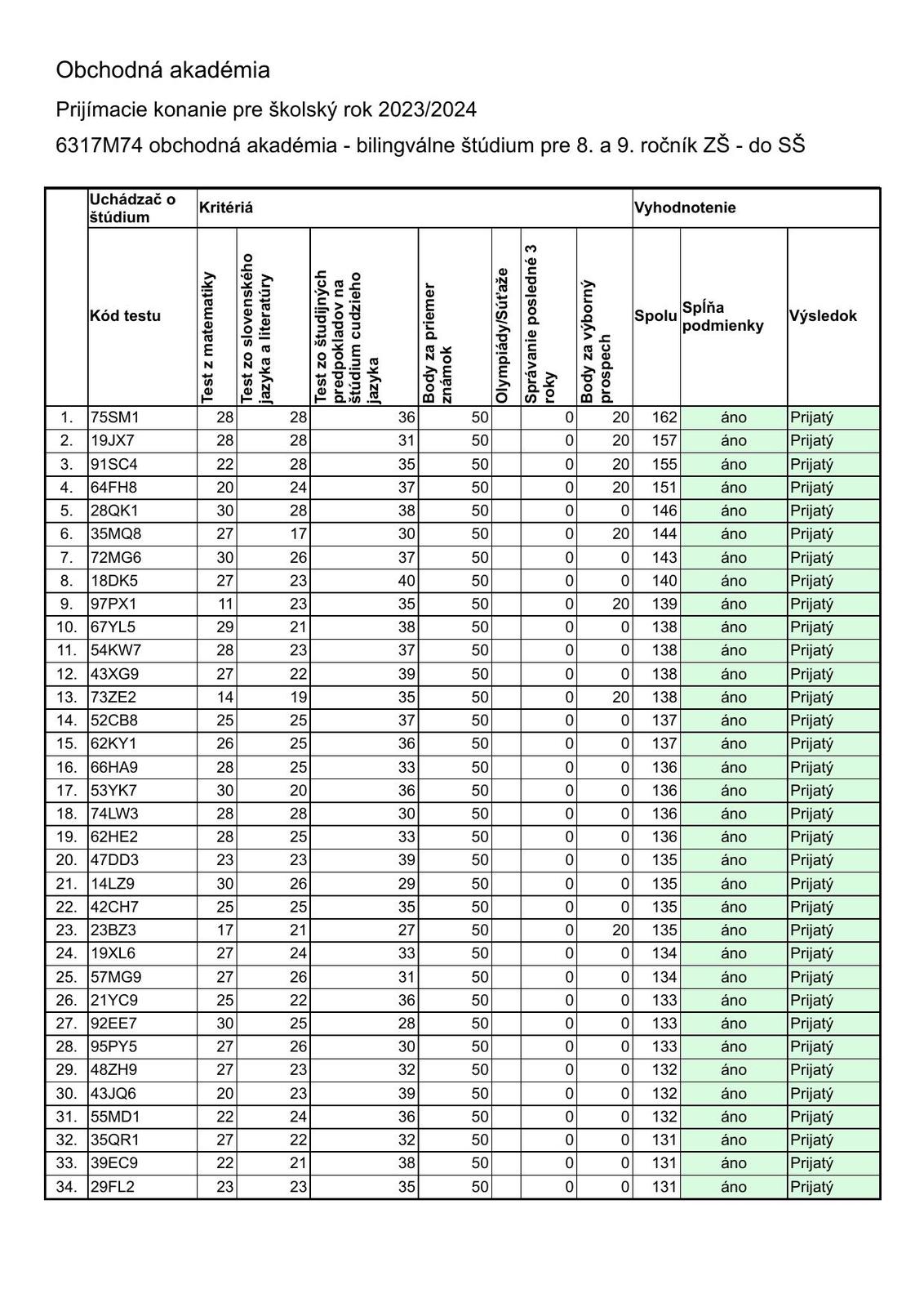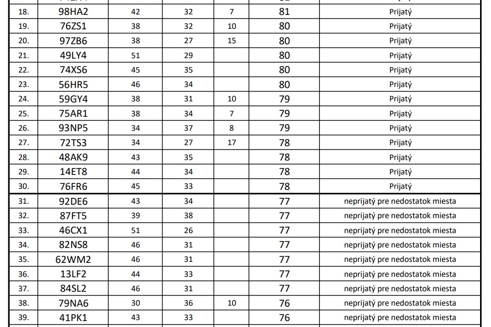 @simoli A náhodou konkrétne z Vazky ten podrobný zoznam nemáte? Lebo u nich na stránke som ho nenašla. Chystá sa tam aj dcérkina spolužiačka, čistá jednotkárka, čo chodí aj na doučovanie, tak aspoň ona sa hádam dostane. Ona má 2. možnosť má C.S.Lewisa, tam je pomer celkom OK, keďže je to súkromné.