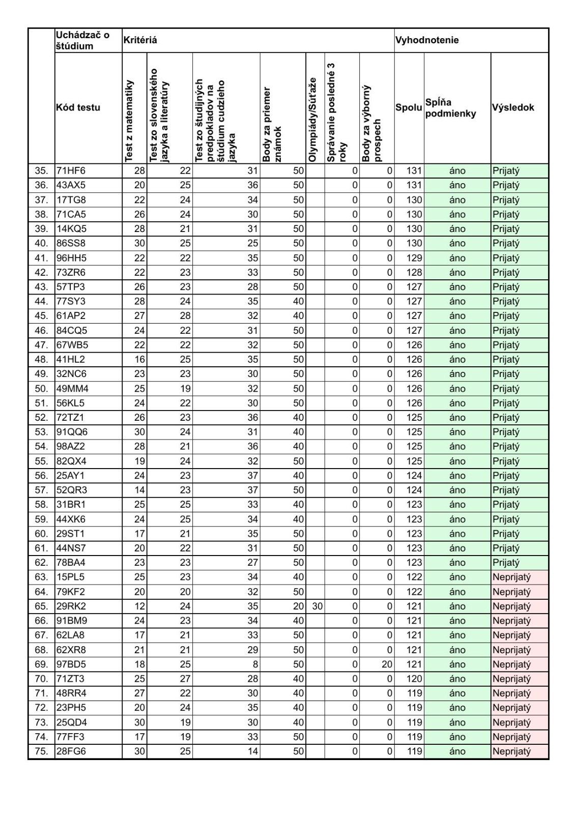 @simoli Áno, videla som ten podrobný zoznam z minulých rokov. Dcérka má žiaľ z tých profilových predmetov za minulý rok 2 z 3 dvojok na vysvedčení, tento rok už len 1, ale aj tak to nestačí na lepší priemer, a za prospech teda dostane dokonca len 30 bodov. Normálne rozmýšľam, či neprehodiť prihlášku na hocijaký iný biling. gympel, že tam asi fakt bude mať dcérka väčšiu šancu. Keďže na Dudovej stráca už teraz 40 bodov oproti čistým jednotkárom a to sa podľa mna už dobehnúť v prijímačkach nedá. A nie všade berú do úvahy aj vysvedčenie (na Vazovovej napr nie).