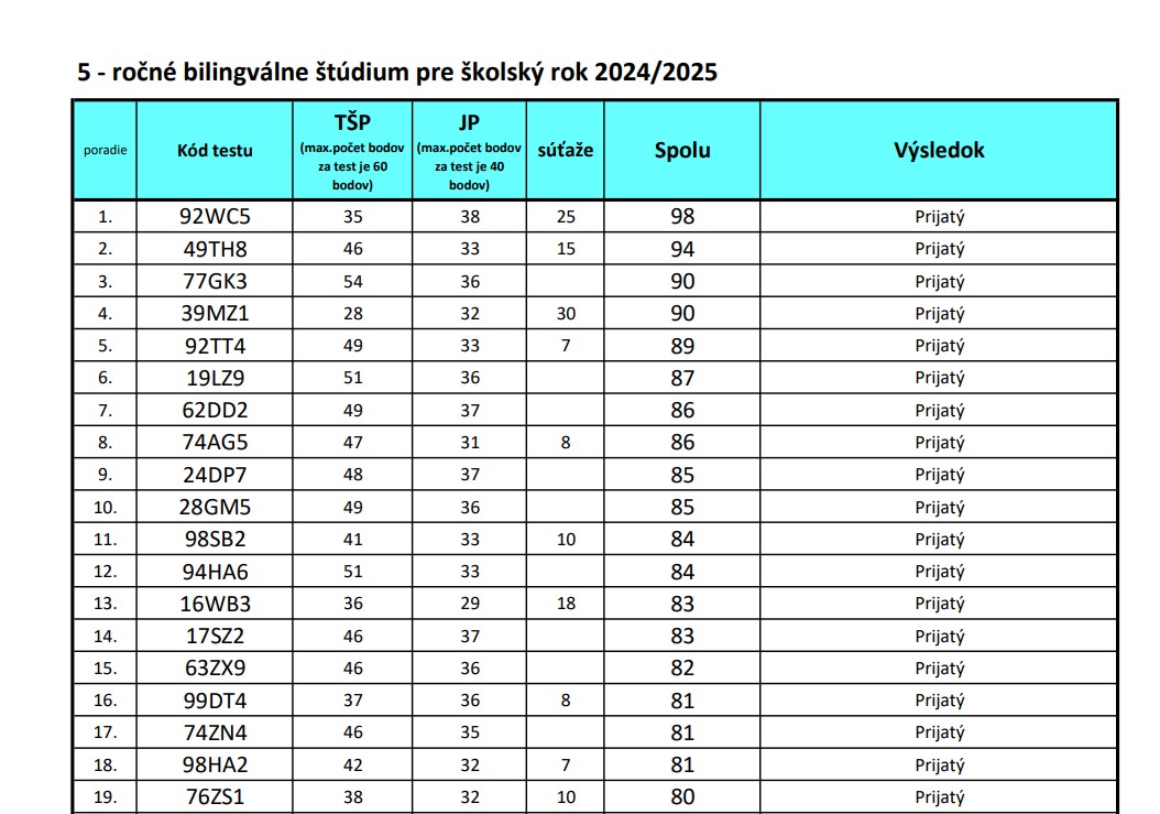 @ninan2 Na Hrobakovu na bilingval ak spravi testy, tak ma velku sancu sa dostat. Tam je plny pocet bodov az do 1,3 priemeru. Syn tam robil minuly rok, mal tu skolu ako poistku, zobrali ho, bol myslim ze niekde v polovici prijatych a to mal v 8.rocniku na konci 4 dvojky. Nastupil ale nakoniec na inu skolu. Tento rok to ale zrejme bude tak, ze deviataci asi neodmietnu nastup, kedze je to tak nastavene ako to je a vacsina asi nebude riskovat. A teda asi na odvolania nebude az taka moznost sa dostat. Ale ak spravi dobre testy,tak sa dostane. Dcera tam chodi, tiez isla z osmicky, teraz je druhacka a je spokojna. Dudova,to je strasny natresk, tam je tazsie sa dostat ako na niektore gymple. Znamej dcera tam robila pred 2 rokmi, najprv ju nevzali, ale zistili, ze jej nepriratali tych 20 ci kolko to je bodov za prospech, kedze mala ciste jednotky. No a to ju vystrelilo asi o 30 miest hore,takze ju nakoniec vzali. Neviem,ci aj tento rok davaju tie extra body za ciste jednotky, ale toto myslim dost ovplyvnuje poradie.Drzim dcerke palce, nech sa dostane na skolu, ktoru chce, su to hrozne stresy toto..