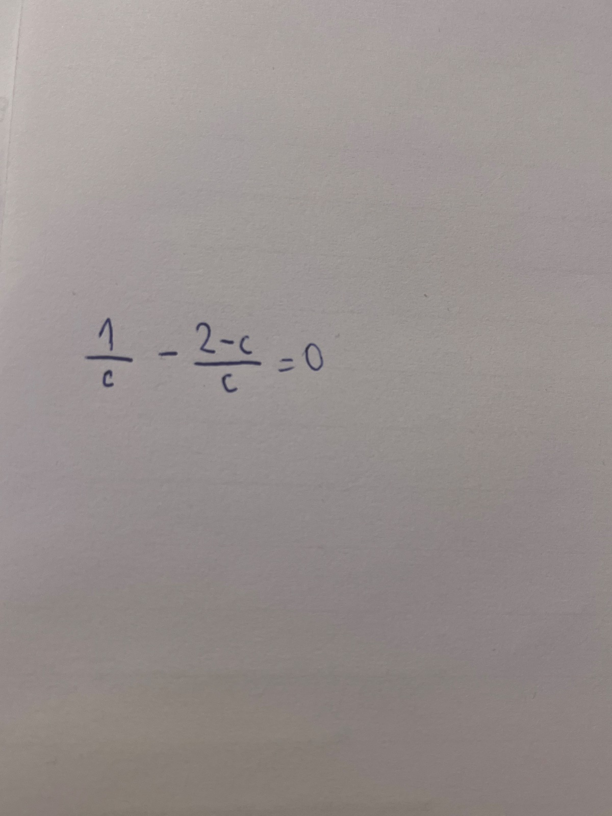 Treba dat na spolocneho menovatela (c) a porovnat zlomok s nulou (teda citatel musi byt nula a menovatel rozny od nuly). A treba si dat pozor na "-" pred zlomkom, menia sa znamienka. A kedze je to rovnica, tak vo vypocte pis obe strany rovnice, teda aj tu nulu.
