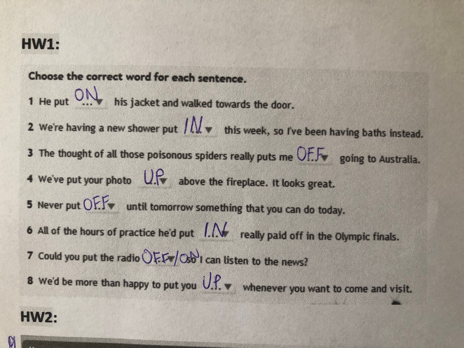 7 by malo byt "on" kedze chce pocuvat spravy hoci mne by gramaticky viac davalo zmysel ak by miesto "put" bolo slovicko "turn".