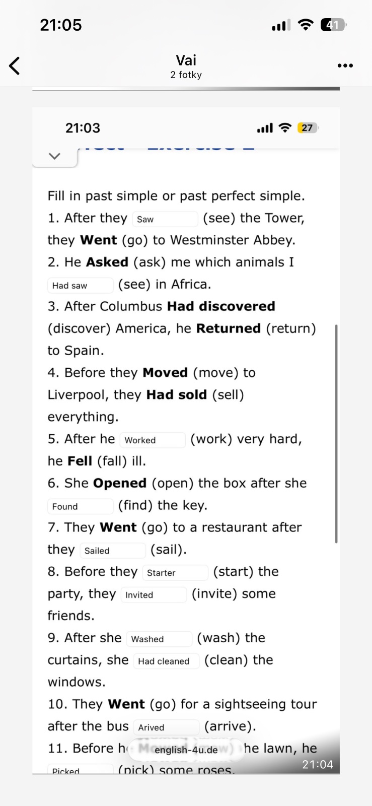 Po kazdom after bude "had" + sloveso z 3.stlpca. kde mas vetu ktora zacina Before, tam bude sloveso z 3.stlpca napr.moved, a druha cast vety bude "had + sloveso z 3.stlpca..a td.. je tam viac chyb