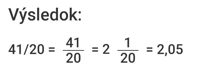 10 cela 1/4 je v zlomku 41/4. To vydelis aby ti vyslo desatine cislo-to je 10,25m. A to vydelis poctom casti 5=2,05m je vysledok