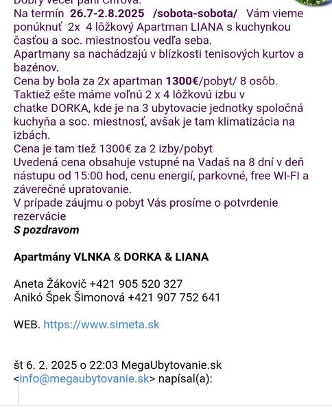 Ahojte dievčatá. Takže posielam vám chaty, termíny aj ceny kde bolo ešte dnes, včera voľné.