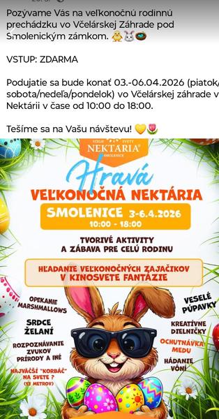 My tam napríklad radi chodíme, ale záleží aký ste náročný, polku ľudí som dnes počula sa baviť a druhá polka hundrala 😂 dcéra to miluje takže chodíme. Áno je tam akoze plnšie ľudí s tím treba rátať na takéto akcie, tento rok mali 5 jednoduchých súťaži, a za odmenu zbierali vajíčka, keď mali všetky šli si pre odmenu (omaľovánky, čokoládový zajko, lízatko, záložka, odznak..). Je tam detská diskotéka, maľovanie na tvár, nejaké to občerstvenie (ale samozrejme dlhé rady). Ale čo nespravím pre deti kým majú radi tieto akcie 😂 prostredie pekne