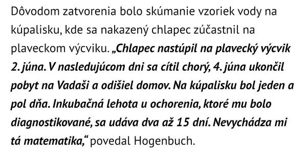 Po vyjadrení matky môžem napísať, že ja by som tam v živote nevkročila, aj keby to bolo najčistejšie kúpalisko na celom svete. Vypustiť klamstvo do novín a ešte v takej citlivej veci svedčí teda o charaktere tohto miesta. Aby sa rodičia bránili čerstvo po pohrebe svojho malého syna, neskutočne. Našli tam rôzne druhy améb, ktoré sú škodlivé, vrátane tých, ktoré sú rovnakého druhu ako tá, ktorá toho chlapčeka zabila. Ale však kľudne si opakujte mantru, že ale to nie je isté, že tam sa nakazil. Kúpalisko nepotrebuje nikoho, kto by im škodil a dával dole.. dali sa dole sami.