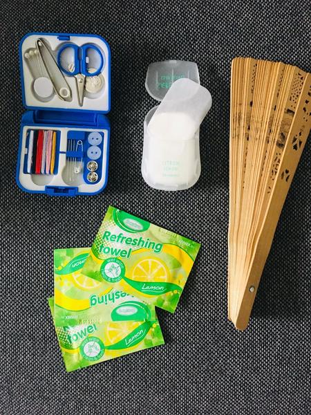 - jednorazove vlhcene utierky - beriem si z lietadla ak nepouzijem alebo ak dostanem vo fast foode v burgru a nosim 2-3 kusy v kabelke (lepsie ako velke balenia vhlcenych, je to spratne)
