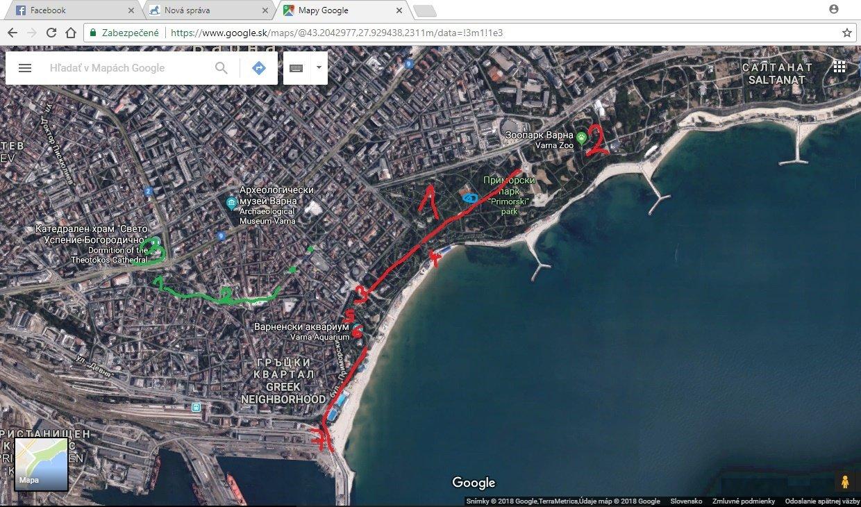 @anetta85 na obrazku, tam kde je Varna Zoo ( cervena 2) je aj delfinarium, a tam kde pisu Primorsky park je pamatnik, pojdete dole peso po asfalte a tam ako je modra bodka je verejne ihrisko a cervena 1 je ten park, je to blizsie pri sebe ako to vyzera na mape. cervena 3 je vojenske muzeum, tam sa plati 4leva na dospeleho, deti mali zdarma ( ale neviem do akeho veku, da sa ist pozriet do vnutra aj vonku) ale to muzeum vidno z chodnika, tak by ste nechceli ist dnu. medzi 1a 3 mas centrum mesta.
