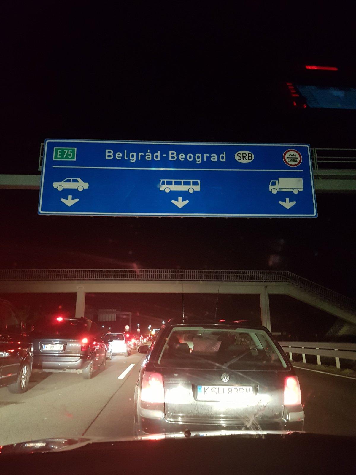 Takze kolona v srbsku. Bude to tak na hodku. Stojime pri tej omv.