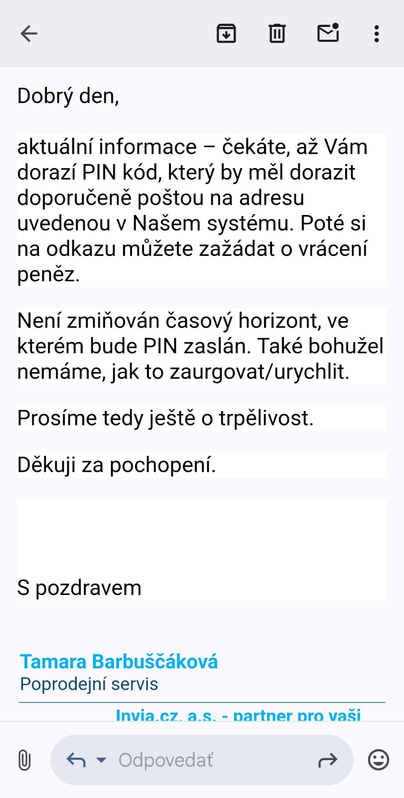 Môžem poprosiť tých, ktorým prišiel uz mail s PIN, z akej adresy bol? Už si prídem až paranoidna, že na nás kašlú. Ďakujem;)