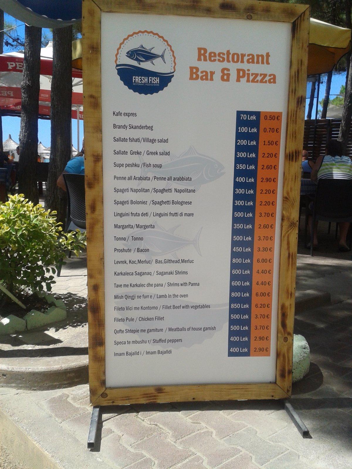 Sme kúsok odtiaľ a voda super teplučko. Striedajú sa vlny a kľudne more. Ceny sú o polku nižšie ako v Chorvátsku. Káva 50-70 centov. Jedlo do 6 eur, to je najdrahsie jahnacie na grile a najkvalitnejšie ryby. Pizza 3 eura, cestoviny 3,50. Ovocie kupujeme na pláži lacno.
