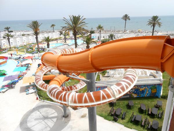 @tinasc tu mas fotky aby si mala predstavu. Ta prva to je areal hotela a jedalne za bazenom. To vysoke to uz nie je hotel, to tam nieco stavaju. Druha fotka je stred toho, je to areal toboganov. My sme mavali lehatka pri tom detskom. Tretia fotka je koniec arealu, ked pozriet ponad tobogan tak piate dvere z lava bola nasa izba. vsetko je to fotene z toboganovej veze, takze skoro z jedneho miesta