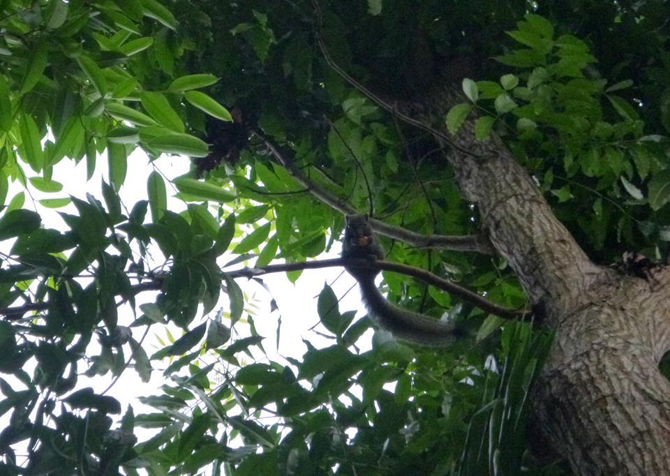 A ešte..keď tu už bola otázka o "parazitoch"...tak jediný malý "parazit" bolo toto milé zvieratko, ktoré nám každé ráno už od 5:00 škriekalo na terase našej chatky. Prvé ráno som mu dala chrumku a od vtedy sa ho neišlo zbaviť 🙂 tak som ho každé ráno o 5:30 nakŕmila pravými Slovenskými chrumkami a spokojne si vyliezlo na strom 🙂