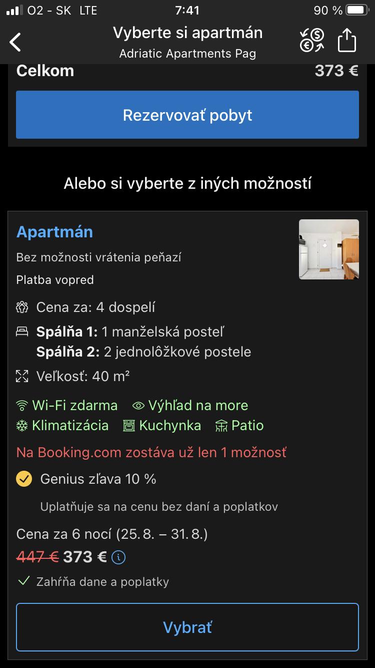 @katica06 nebojte sa na booking. com sa ešte určite dačo nájde. Väčšinou v tichej lokalite skôr. Väčšina si zarezervujte viac a potom to rušia. Nie raz sme našli. Len treba tomu venovať čas a hľadať. My sme väčšinou vždy chodili lacno. S raňajkami pre troch sme boli aj za 260 na týždeň. Ale jasne ze najlepšie sa vychyta. Ale určite aj na poslednú chvíľu sa dá dobré nájsť. Aj keď žiaľ Chorvátsko je drahé všeobecne.